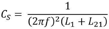 Equation-3 shows the AC Helmholtz coil series-resonant frequency. The series capacitance, CS, is determined using Equation-4. The voltage across the series capacitor is shown in Equation-2 above. At high frequency and high current, the voltage could be in the thousands of volts. Using the previous example, at 2A current and 200 kilohertz through a 2 milli-Henry Helmholtz coil pair, the voltage across the capacitor is 5024 volts. The capacitor must be designed for high voltage. The voltage rating must be at least of that value calculated in Equation-2.