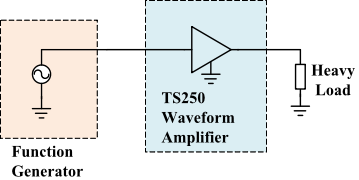 The TS250 waveform amplifier is a unique instrument ideal for amplifying function generator output. It amplifies current or voltage or power for driving heavy loads. The TS250 output current up to 6A peak for the low-